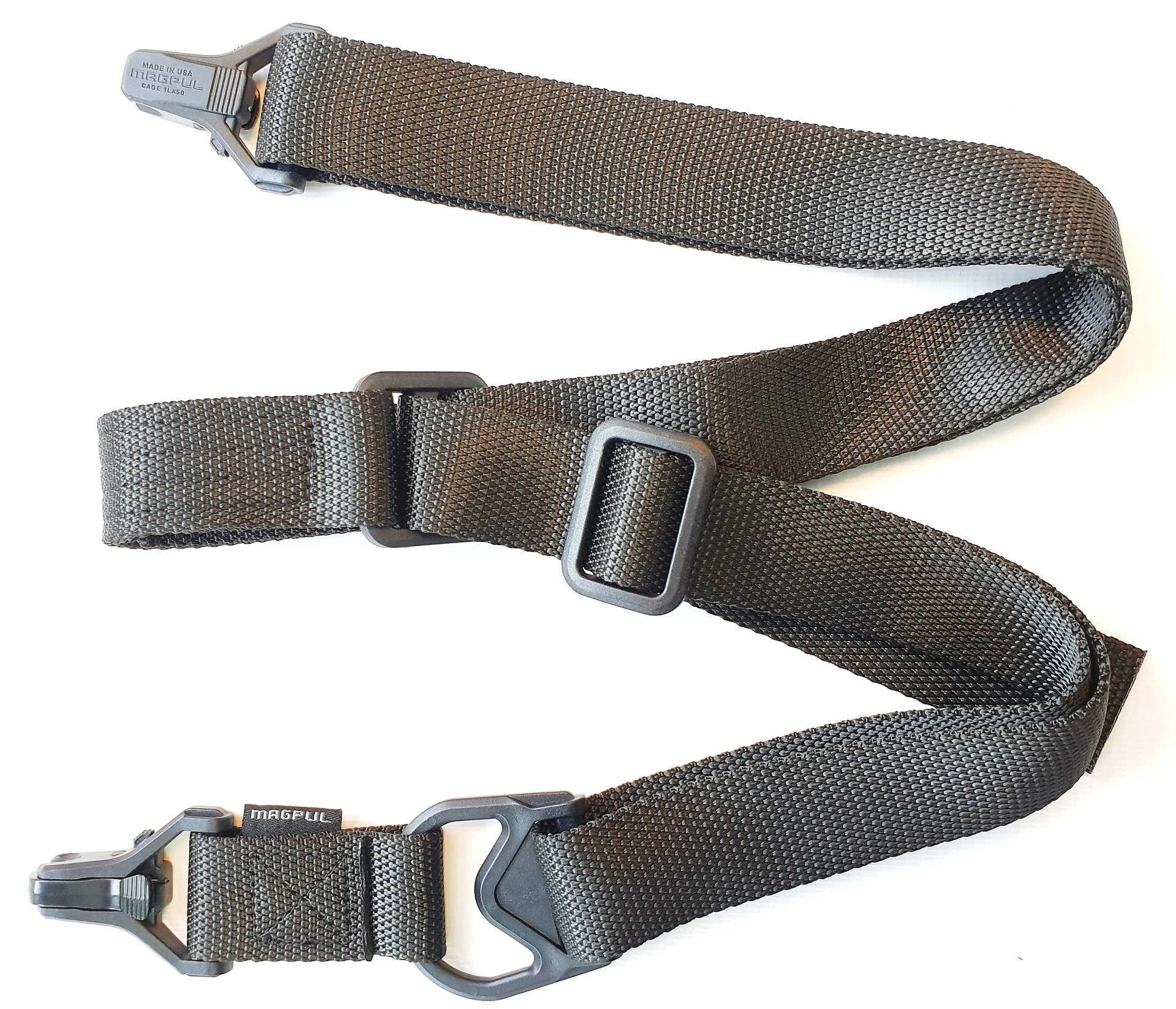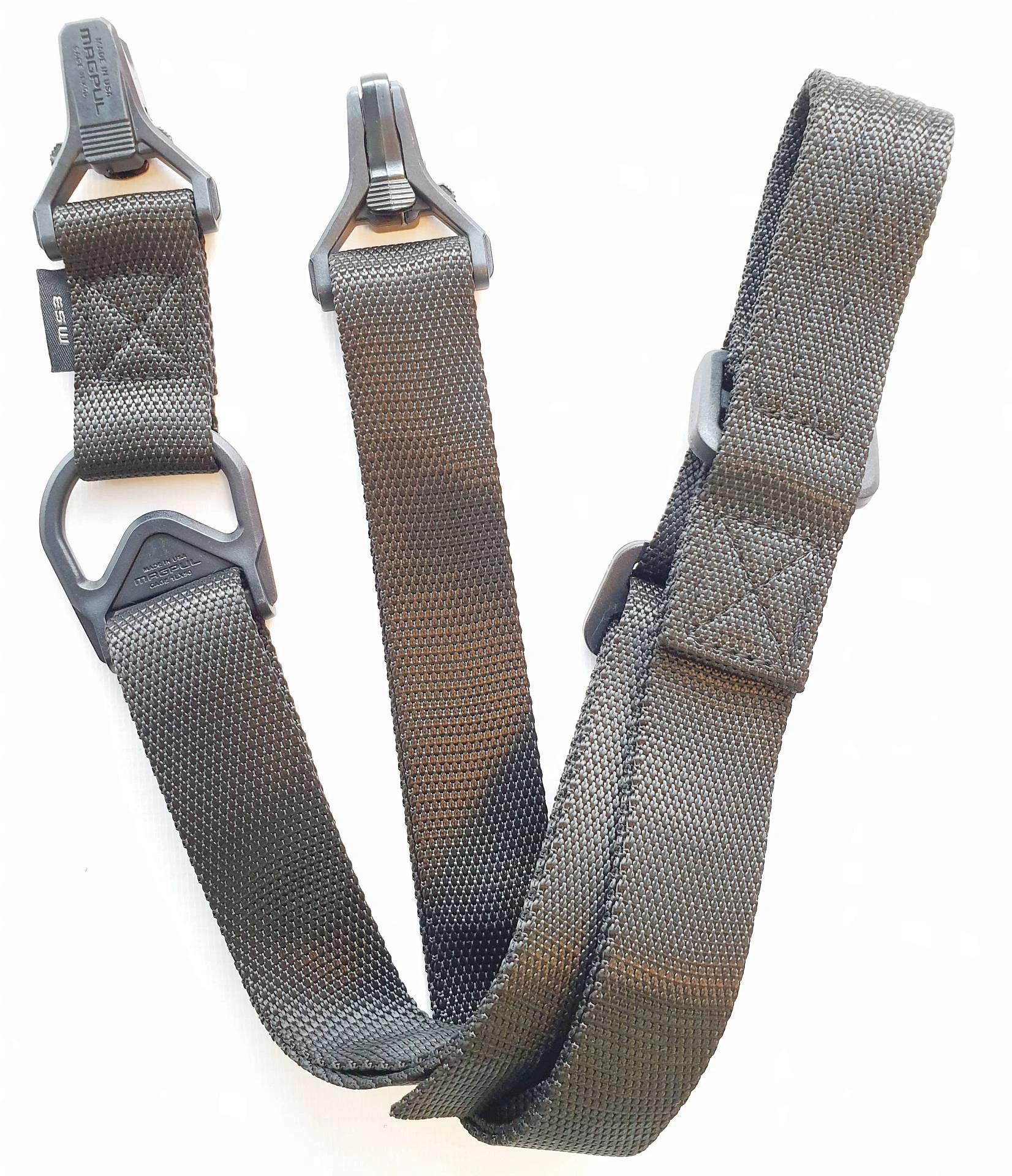 На оружии фиксируется при помощи одного или двух карабинов. Оба совместимы с большинством видов антабок, в том числе и быстросъемного типа