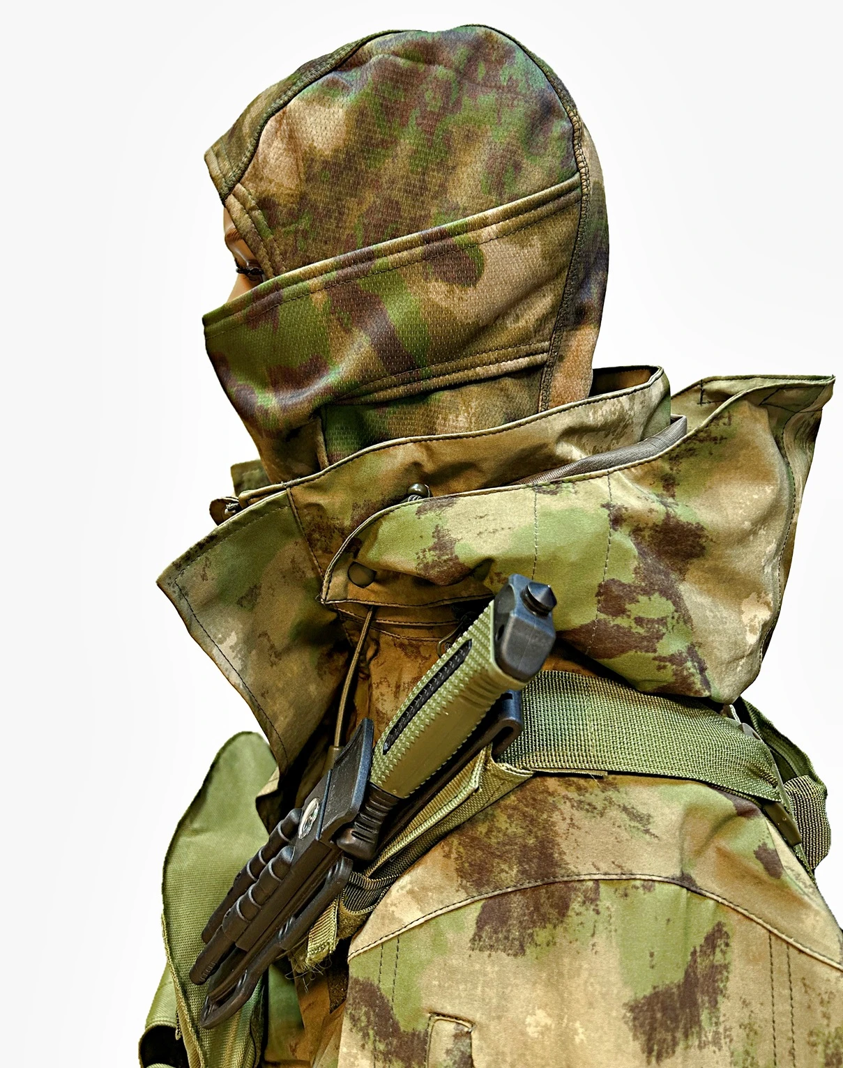 Защищает голову и лицо от осадков, солнечных лучей, грязи и пыли