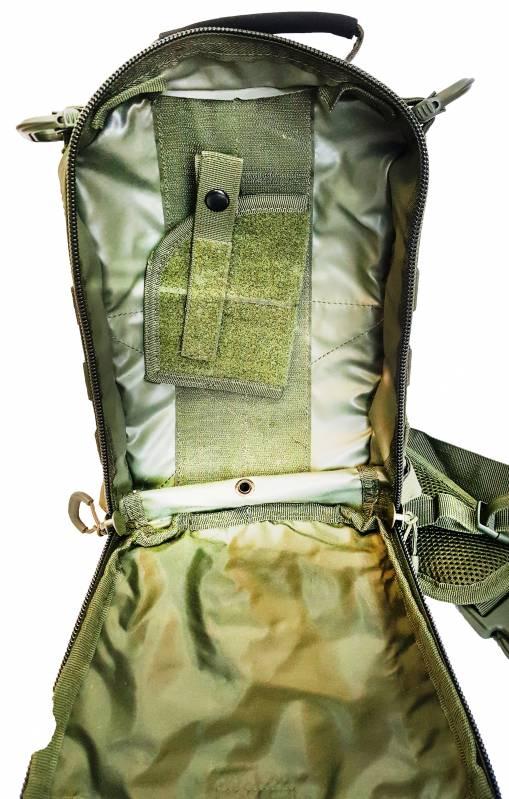 Сумка комплектуется универсальной кобурой скрытого ношения пистолета и переноски короткоствольного оружия.